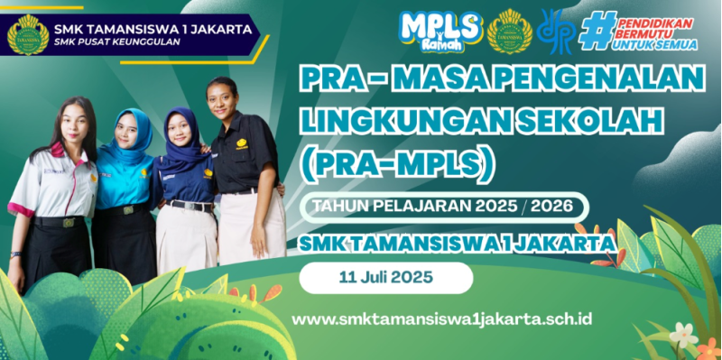 Menindaklanjuti Surat Edaran Kadisdik DKI Jakarta Nomor 27/SE/2025 tentang HPS dan MPLS Ramah Tahun Ajaran 2025-2026, Perguruan Tamansiswa Cabang Jakarta Nomor Cab.332-223/Pro-SFy/VII/2025 tentang Informasi Pelaksanaan MPLS Ramah 2025-2026 serta SMK Tamansiswa 1 Jakarta Nomor 662/TKME.SK/VII/2025 tentang MPLS Ramah Kelas X T.P. 2025-2026 maka SMK Tamansiswa 1 Jakarta melaksanakan Pra-MPLS Ramah Murid Baru Kelas X (Sepuluh) T.P. 2025-2026.
